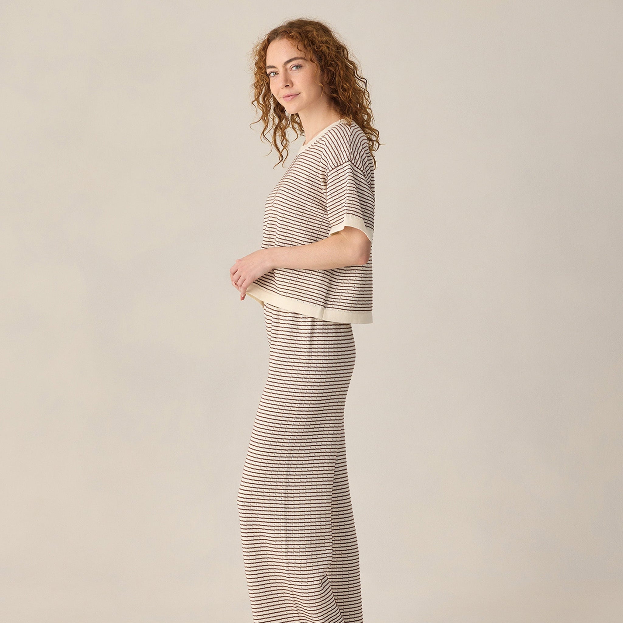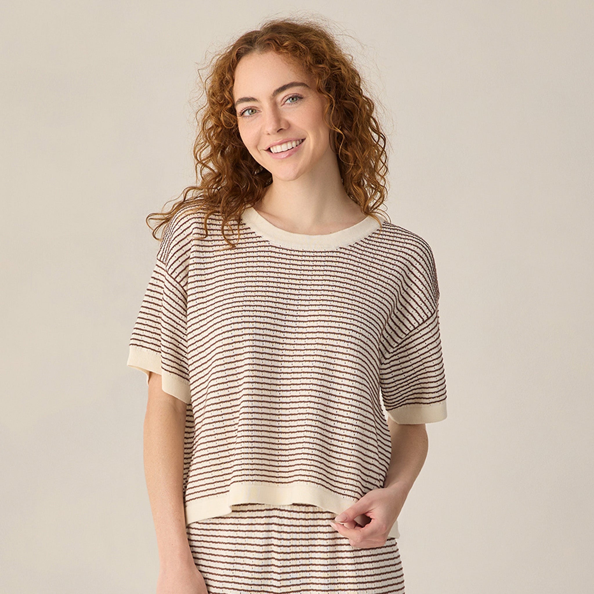 Rylee + Cru Women's Boxy Crop Knit Tee Chocolate Stripe