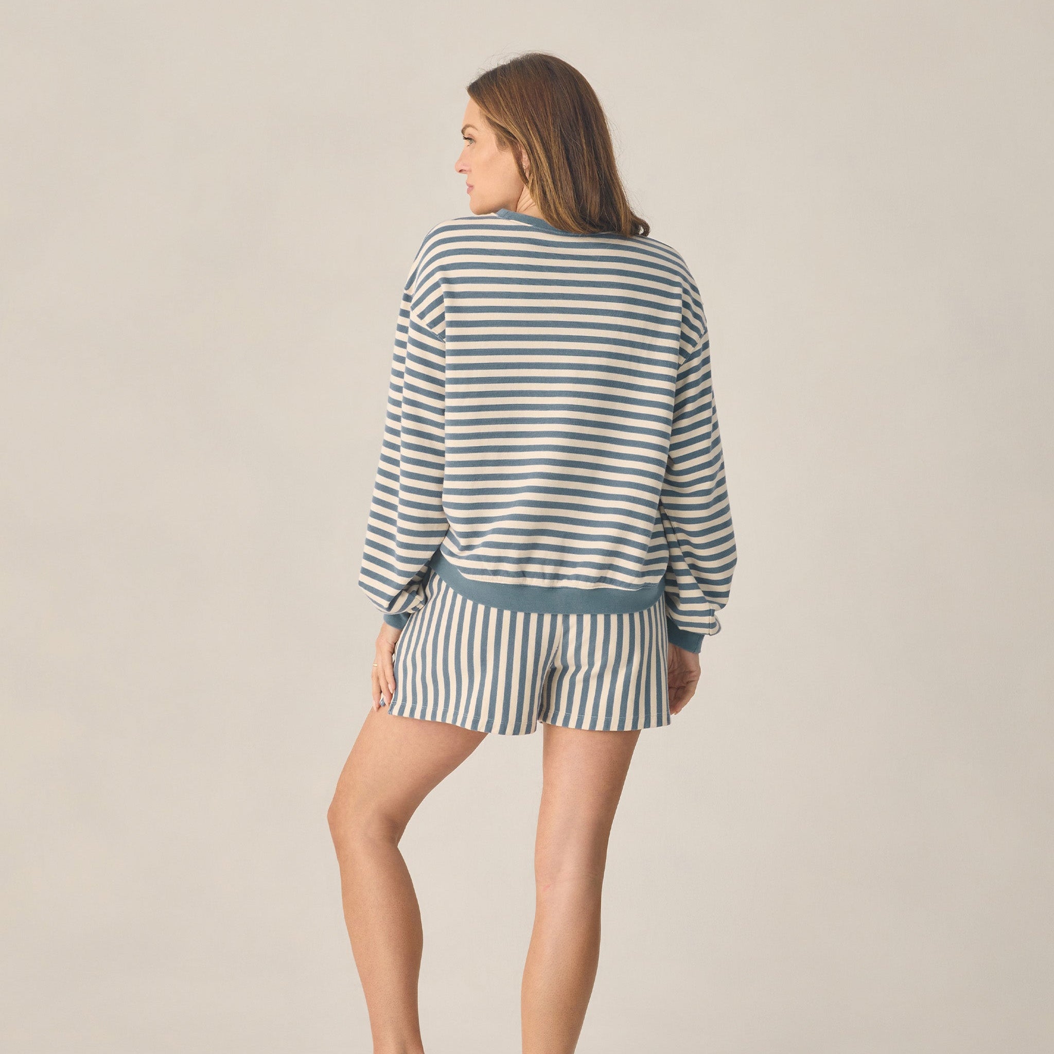 Rylee + Cru Women's Oversized Crew + Short Set Marine Stripe
