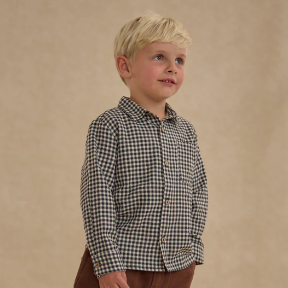 Rylee + Cru Collared Long Sleeve Shirt Navy Check
