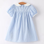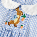 Rylee Faith Blue Plaid Rabbit Embroidered Dress