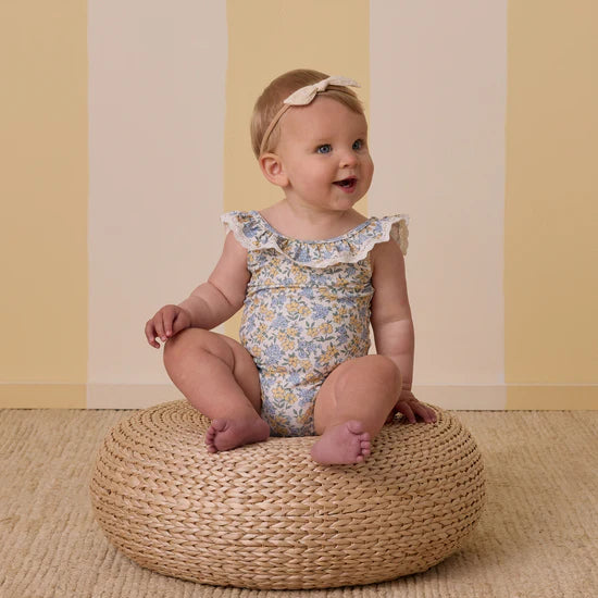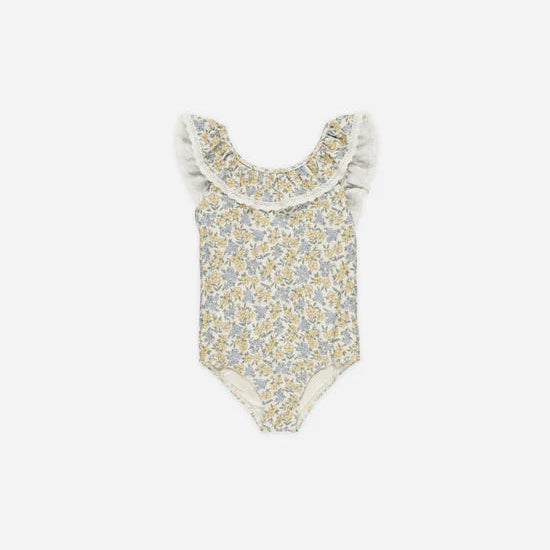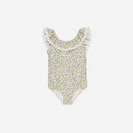 Our Margaret One-Piece features a darling ruffle collar with fine crochet detail, adding fancy flair to your swimwear.