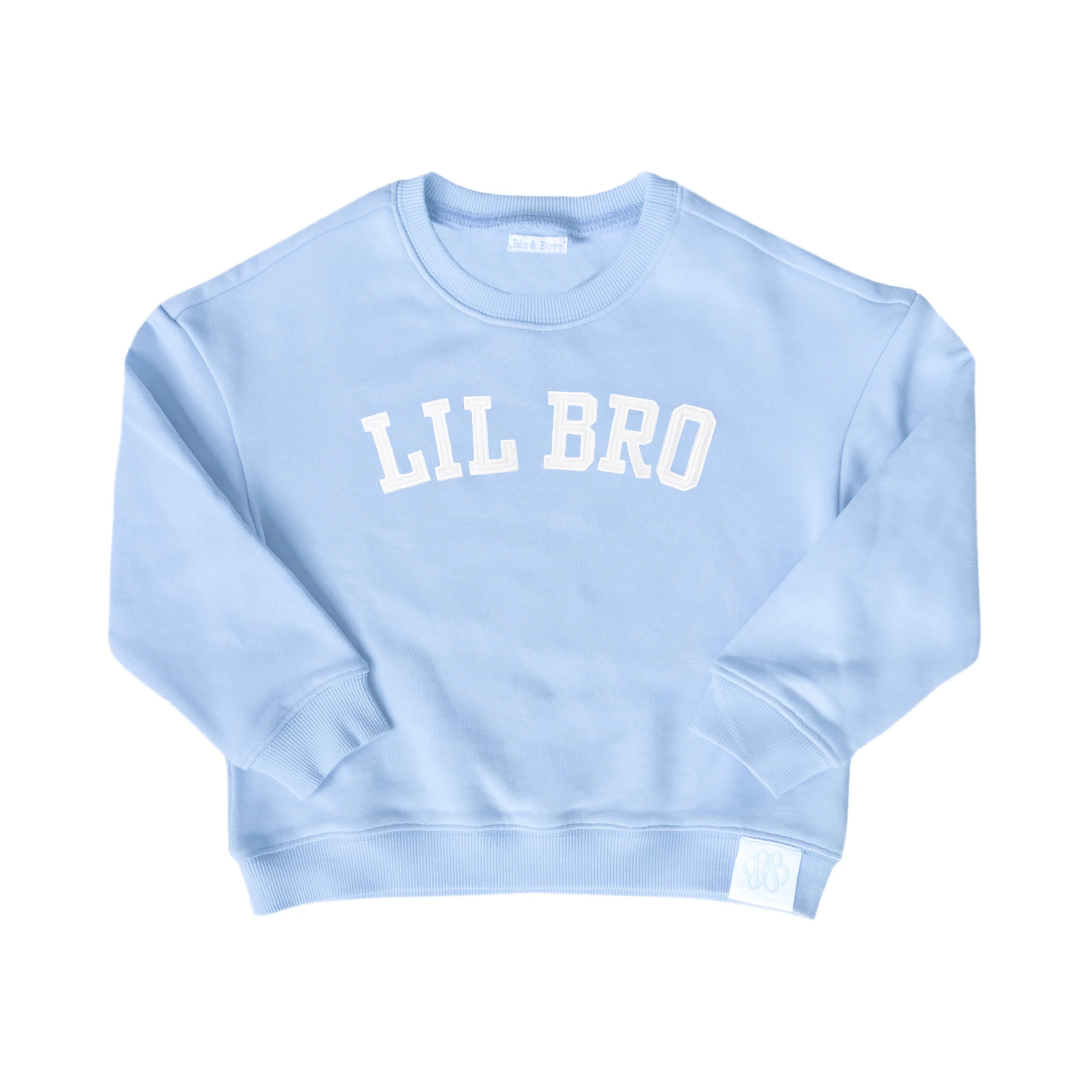 - Blue long sleeve sweatshirt with white "Lil Bro" applique