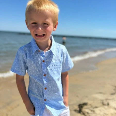 This blue floral woven shirt is the perfect way to add a splash of color and fun to your little guy’s wardrobe!