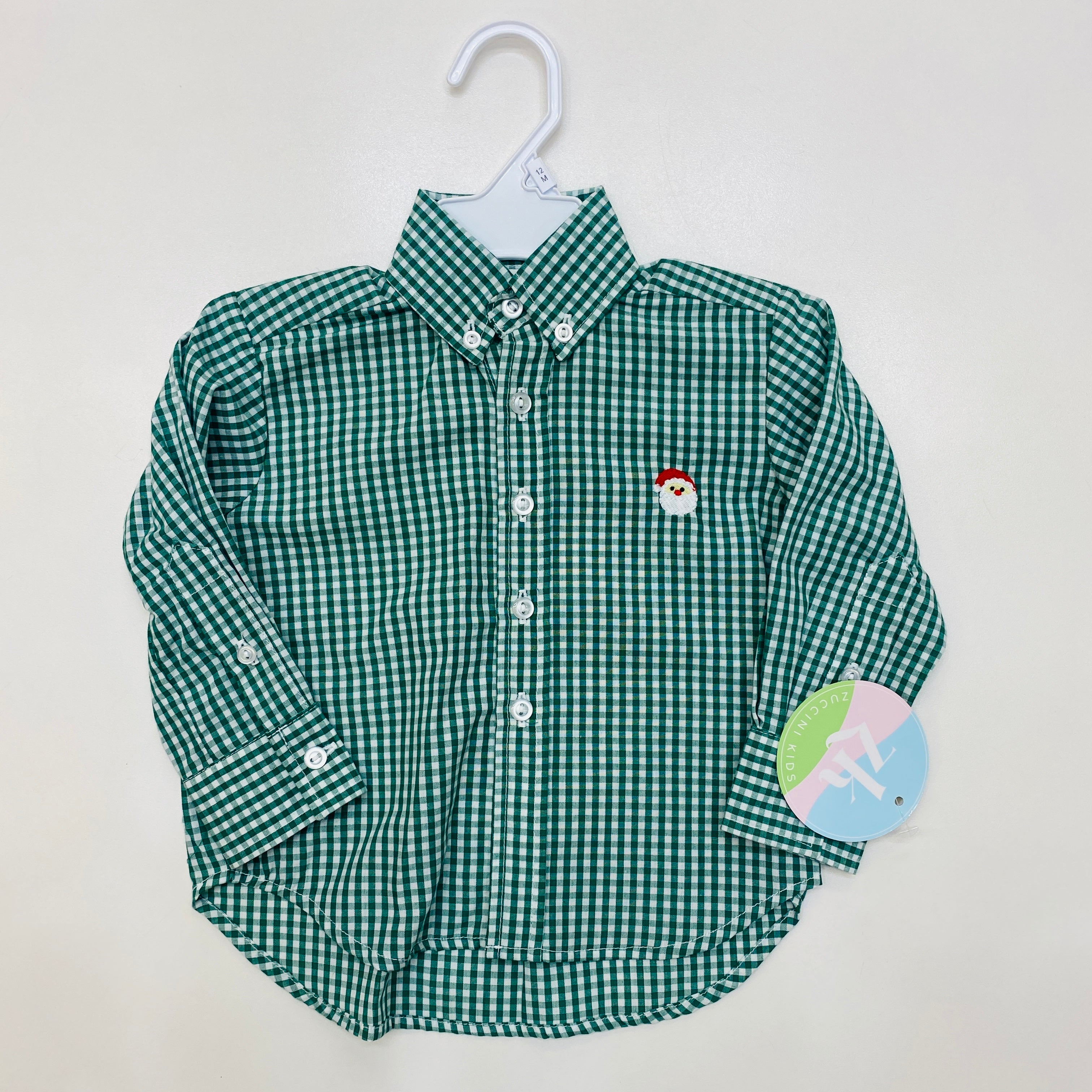Zuccini Kids Alton Santa Face Button Up Green Check