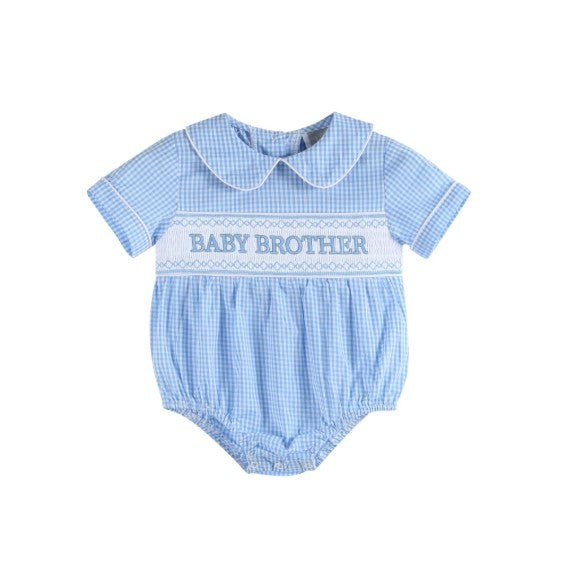 Lil Cactus Light Blue Baby Brother Smocked Collared Romper