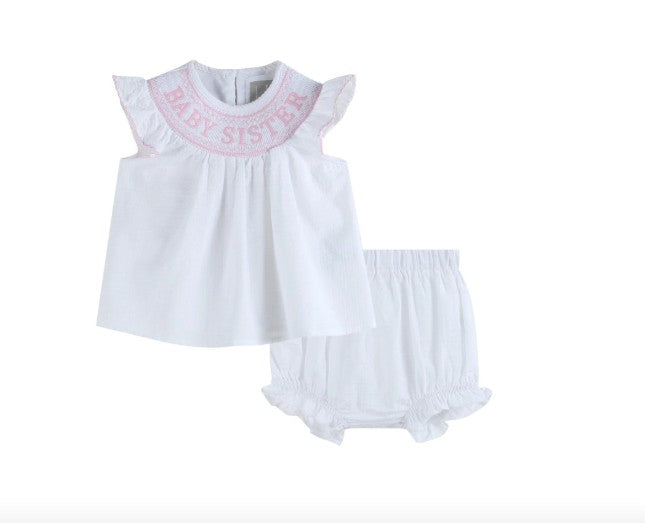 Lil Cactus White Baby Sister Smocked Dress and Bloomer Set