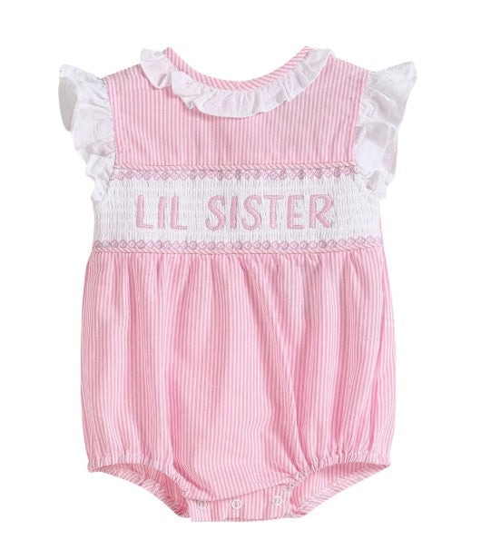 Lil Cactus Pink Striped Lil Sister Smocked Romper