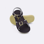 The Sun-San Surfer is a classic two-strap sandal that’s perfect for younger feet. An adjustable toe buckle and ankle strap make them great for both wide and narrow feet. Wear them comfortably all day long — thanks to the lightweight, cushioned urethane sole. Rust-proof brass buckles and scuff-resistant water-friendly genuine leather make them ideal for in-and-out-of-water wear. They clean up so easily and with proper care, they will last for years.