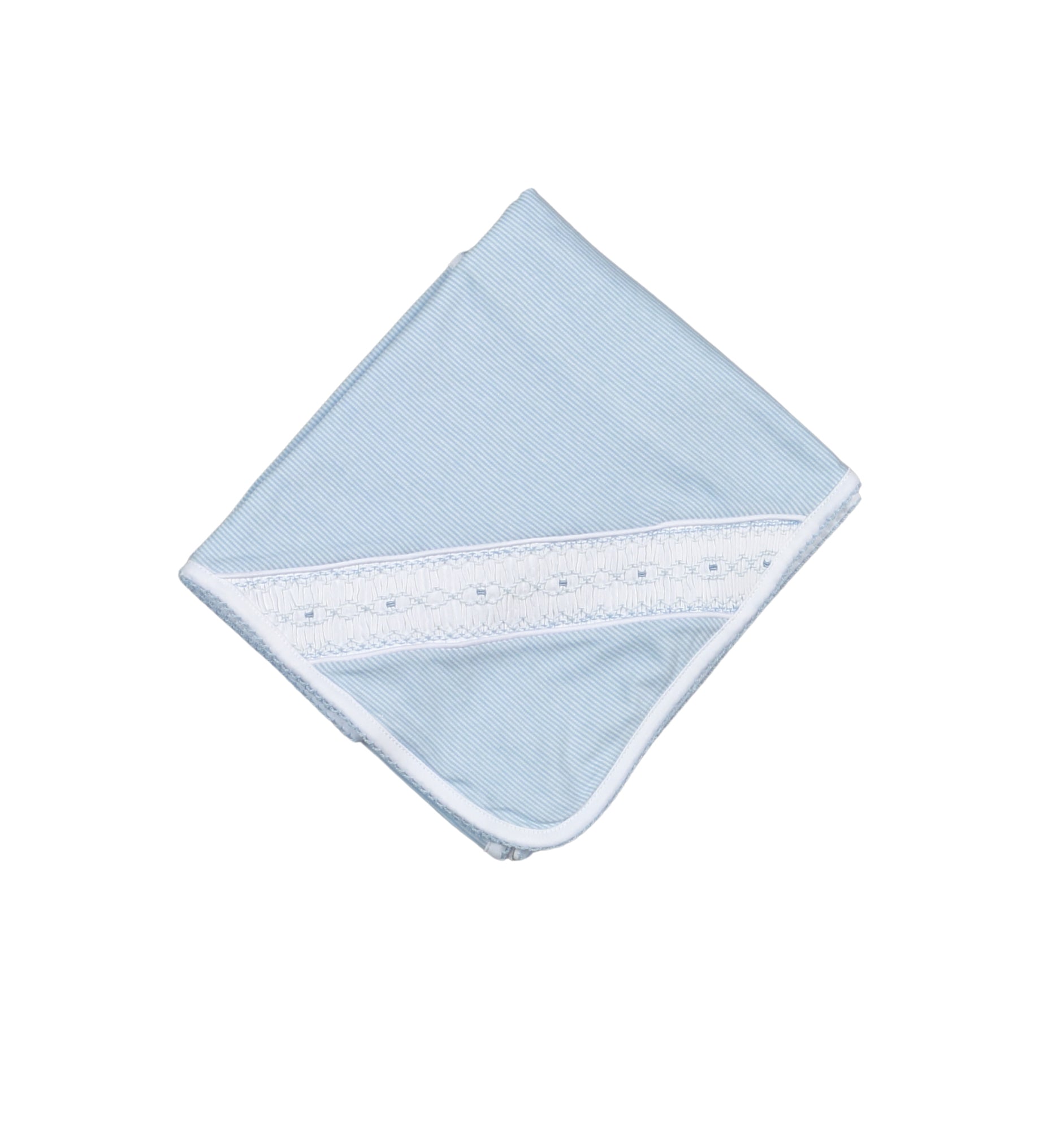 Baby Loren Tim Blue Stripes Hand Smocked Pima Receiving Blanket