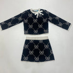 Abel & Lula Tricot Skirt Set Black and White Bows