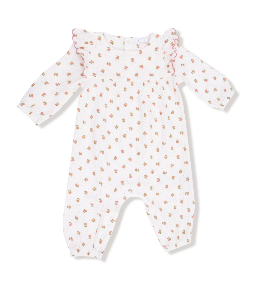 Wrap your little one in cozy charm with our Long Sleeve Petal Ruffle Romper, made from breathable organic cotton muslin. Featuring a delicate petal-inspired ruffle neckline and gentle elastic at the cuffs, this romper is perfect for fall days filled with play, snuggles, and stylish adventures.