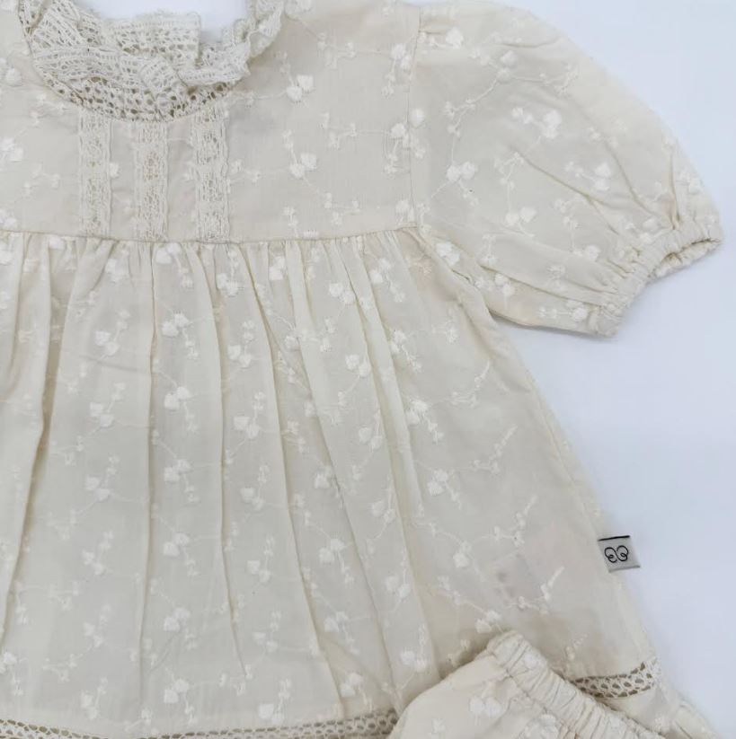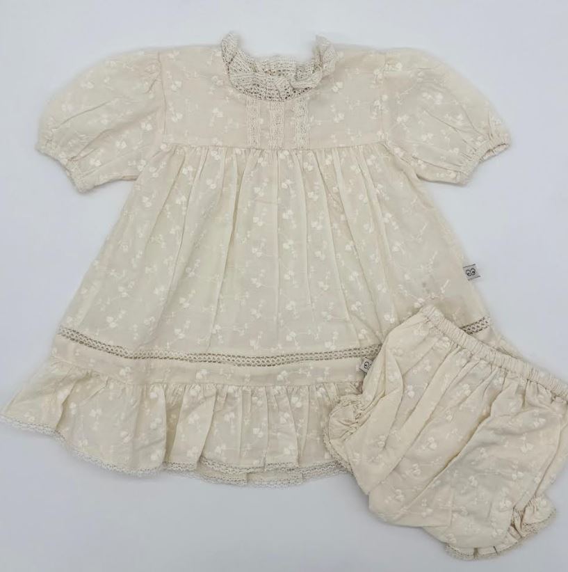 Early Sunday Mae Baby Dress & Bloomer Set Hazelnut Cream