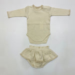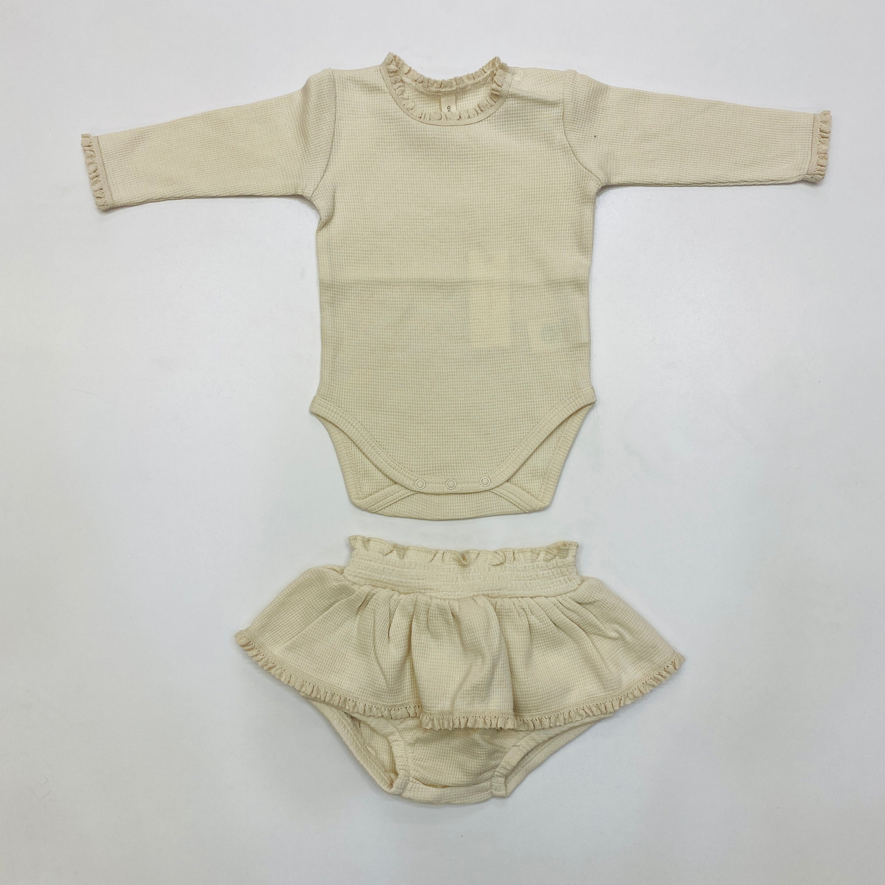 Quincy Mae Waffle Bodysuit and Skirted Bloomer Set Natural