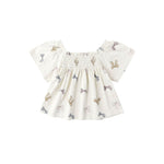 Add a touch of flowy flair to your little one’s wardrobe with our Kate Top & Bow Pant Set, featuring a smocked neckline, sweet short sleeves, and a slightly cropped style pant.