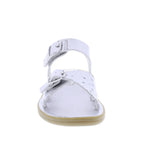 These sandals feature a velcro closure so kids have no trouble getting these on and off!! Constructed with water-friendly leather uppers and leather footbeds, a slip resistant sole and corrosion resistant buckles.