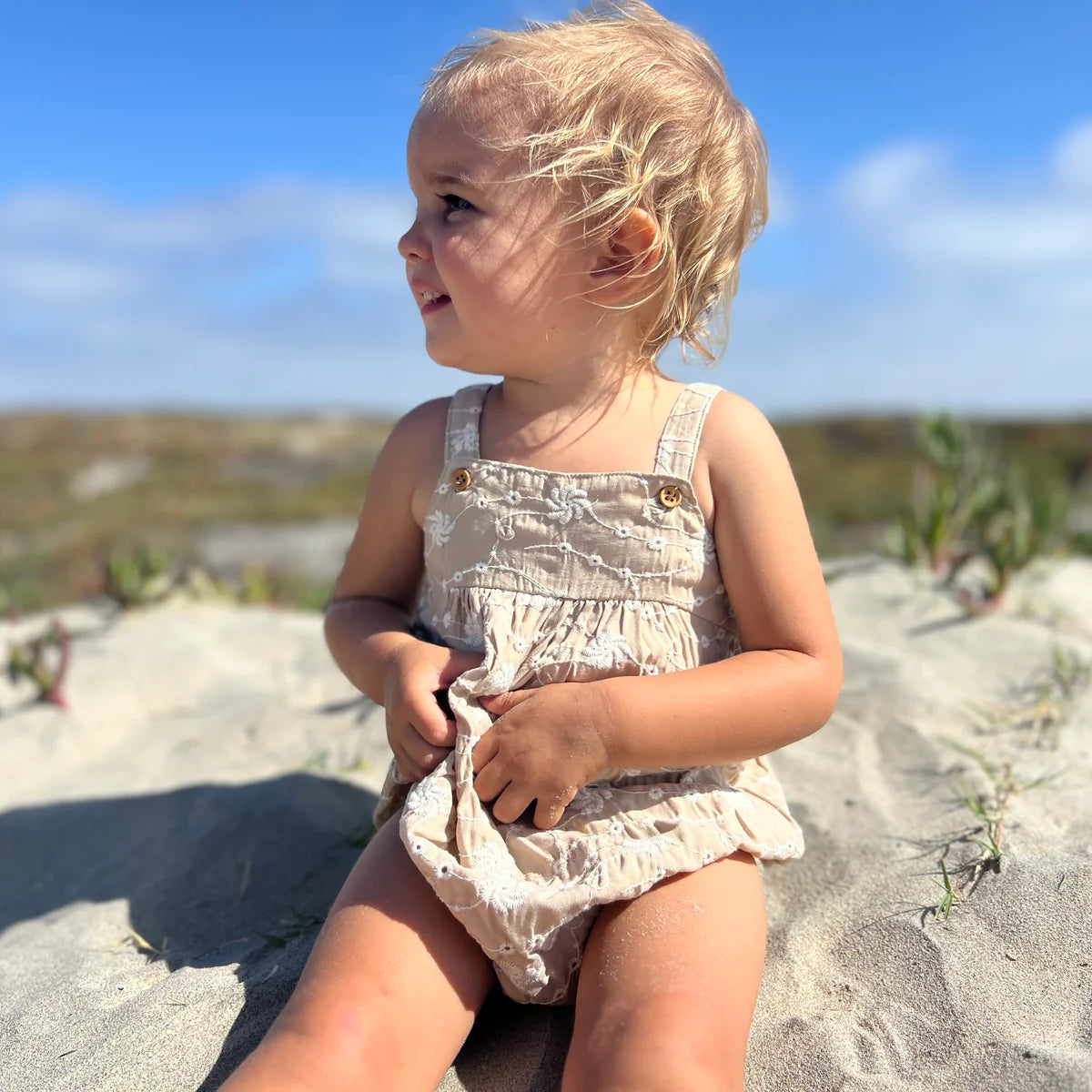 The Hazel Bubble in Tan Dandelion Eyelet is where timeless charm meets everyday playfulness! With its delicate eyelet details and neutral tan hue, this bubble is perfect for tea parties in the garden—or just stealing the show at snack time.
