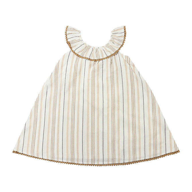 The Josephine dress is the definition of dainty elegance. Featuring subtle all-over stripes and delicate ruffle details.