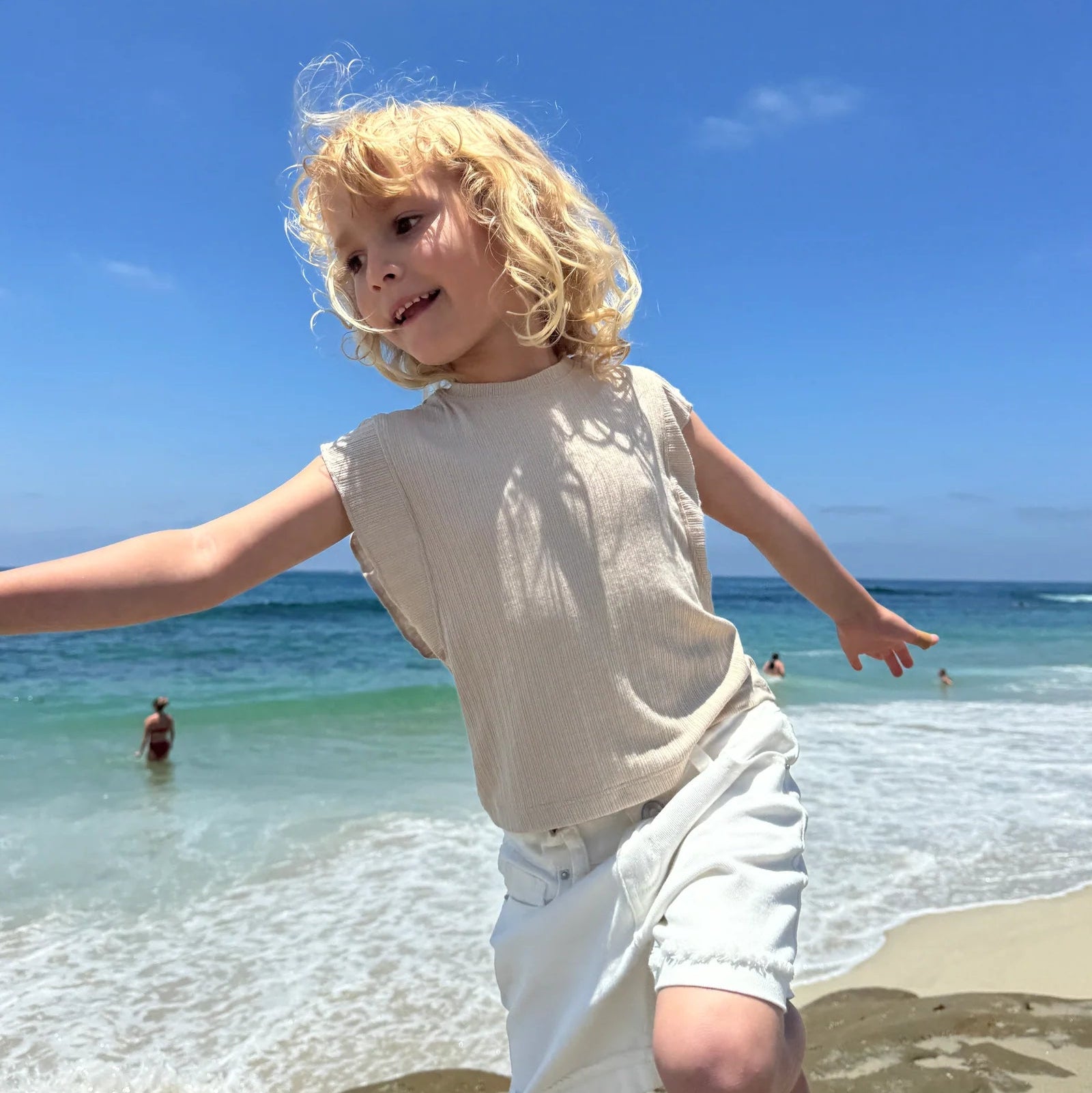 The Kylie Tank is the ultimate wardrobe staple for your little one. Simple, versatile, and designed to go with literally everything, this tank is your go-to for effortless style. Whether paired with shorts, skirts, or layered under overalls, it’s a no-fuss, always-cute option for any occasion. Made with comfort in mind and just the right amount of cool, the Kylie Tank is one of those pieces you’ll reach for again and again. Basically, it’s a must-have—because who doesn’t love a good mix-and-match hero?
