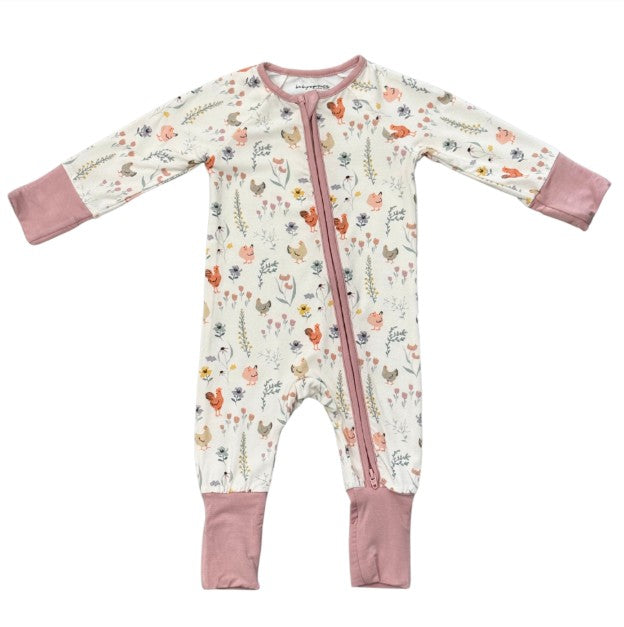 Babysprouts Long Sleeve Zip Romper Floral Chicken