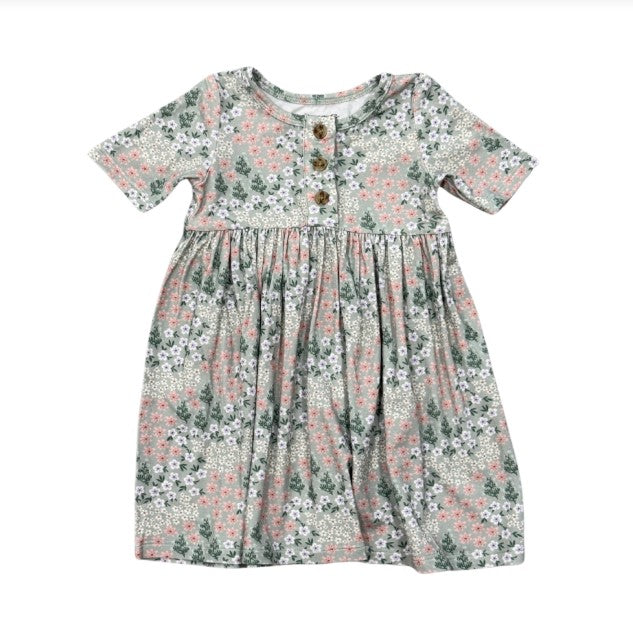 Babysprouts Short Sleeve Henley Dress Aqua/Grey Floral