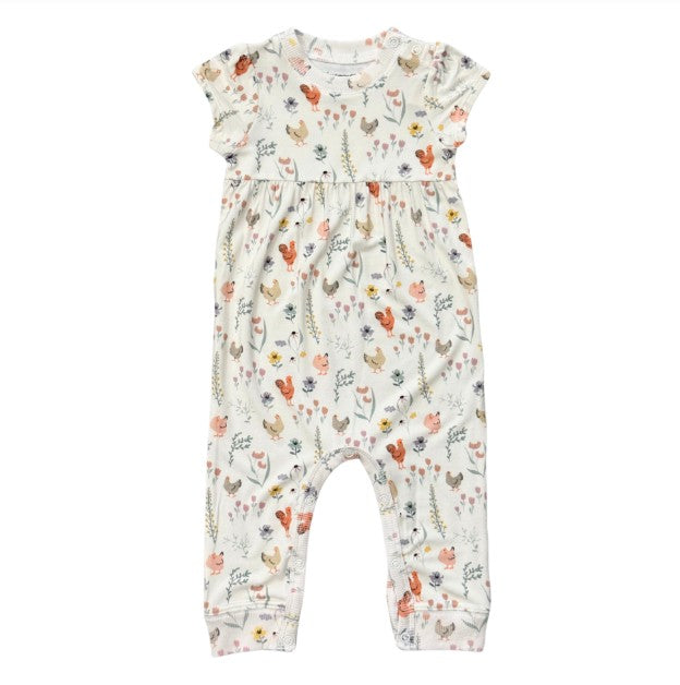 Babysprouts Short Sleeve Pant Romper Floral Chickens
