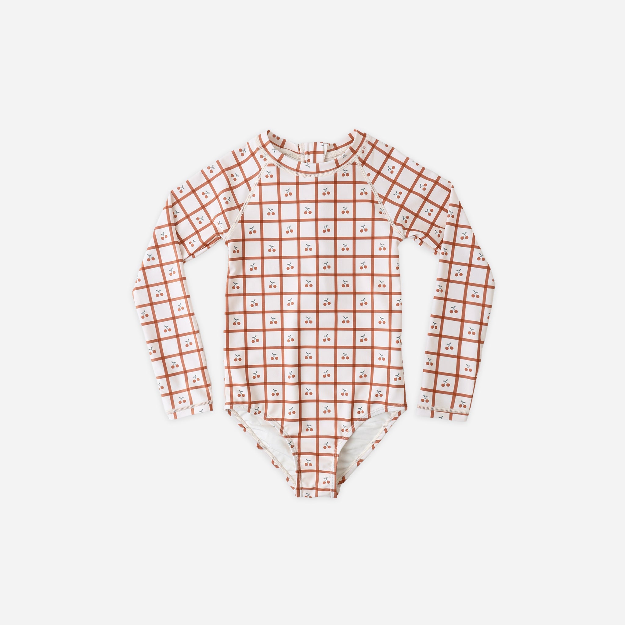 Rylee + Cru Delphine Rashguard One Piece Cherry Check